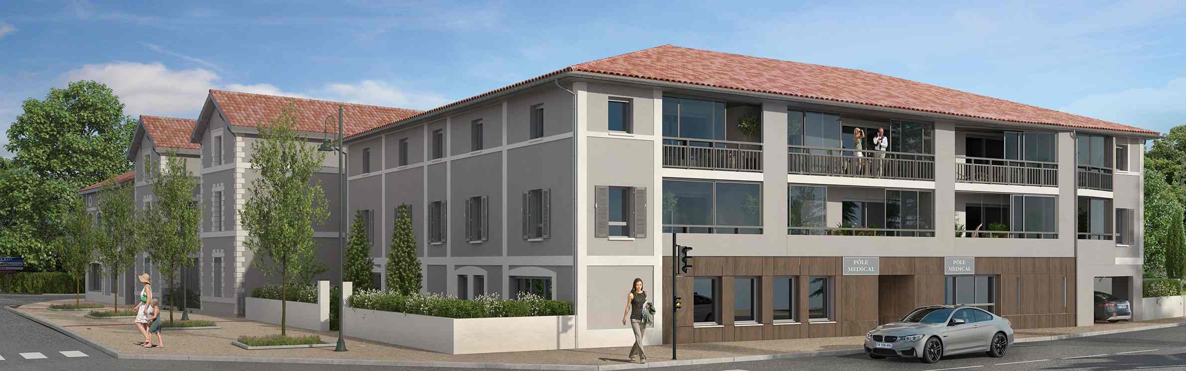 Par son architecture contemporaine et sobre, Amân, programme immobilier à Magescq, s’inscrit avec harmonie dans un ensemble chargé d’histoire où deux belles bâtisses sont conservées. La conception architecturale de la nouvelle résidence Amân s’attache à conserver l’identité locale, inspirée des bâtiments existants.